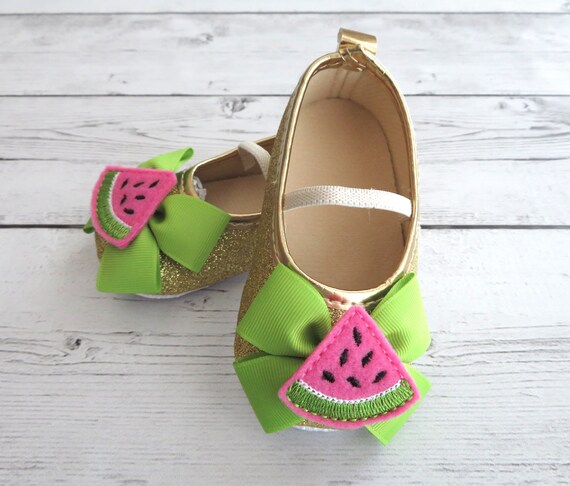 Watermelon First Birthday Shoes Headband Set In Lime Green And Pink One In A Melon Summer Shoes 1st Bday Shoes Watermelon Birthday