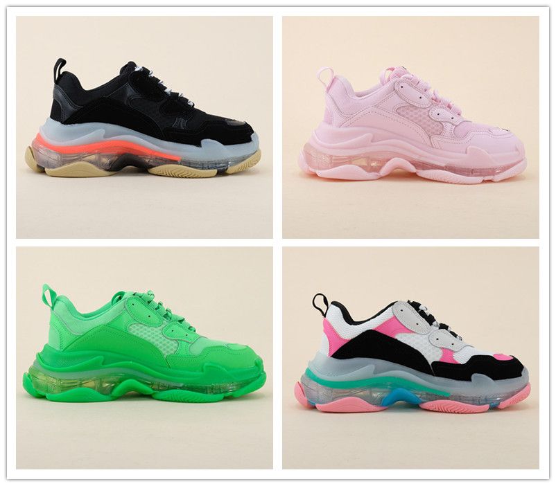 Combination Bottom Paris Triple S Lime Green Pink Black White Dad Shoes Men Women Casual Sneakers Thick Heel Grandpa Trainer Comfortable Shoes